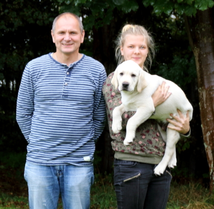 "Skipper" nåede at blive stor inden afrejse, grundet ændrede eksportregler til udlandet. Han bor hos Bärbel, Johannes og Jeanina i Tyskland nær den holandske grænse. "Skipper" har selskab af vores "Sally´s" far, og en del andre labradors samt to Sct. Bernhardshunde. Bärbel, Johannes og deres datter Jeanina oprdætter labrador af den klassiske type og uddanner servicehunde. De udstiller også deres hunde, og vi glæder os meget til at følge "Skipper" hos dem, og til hyggeligt genssyn med ham på udstillinger i Tyskland.